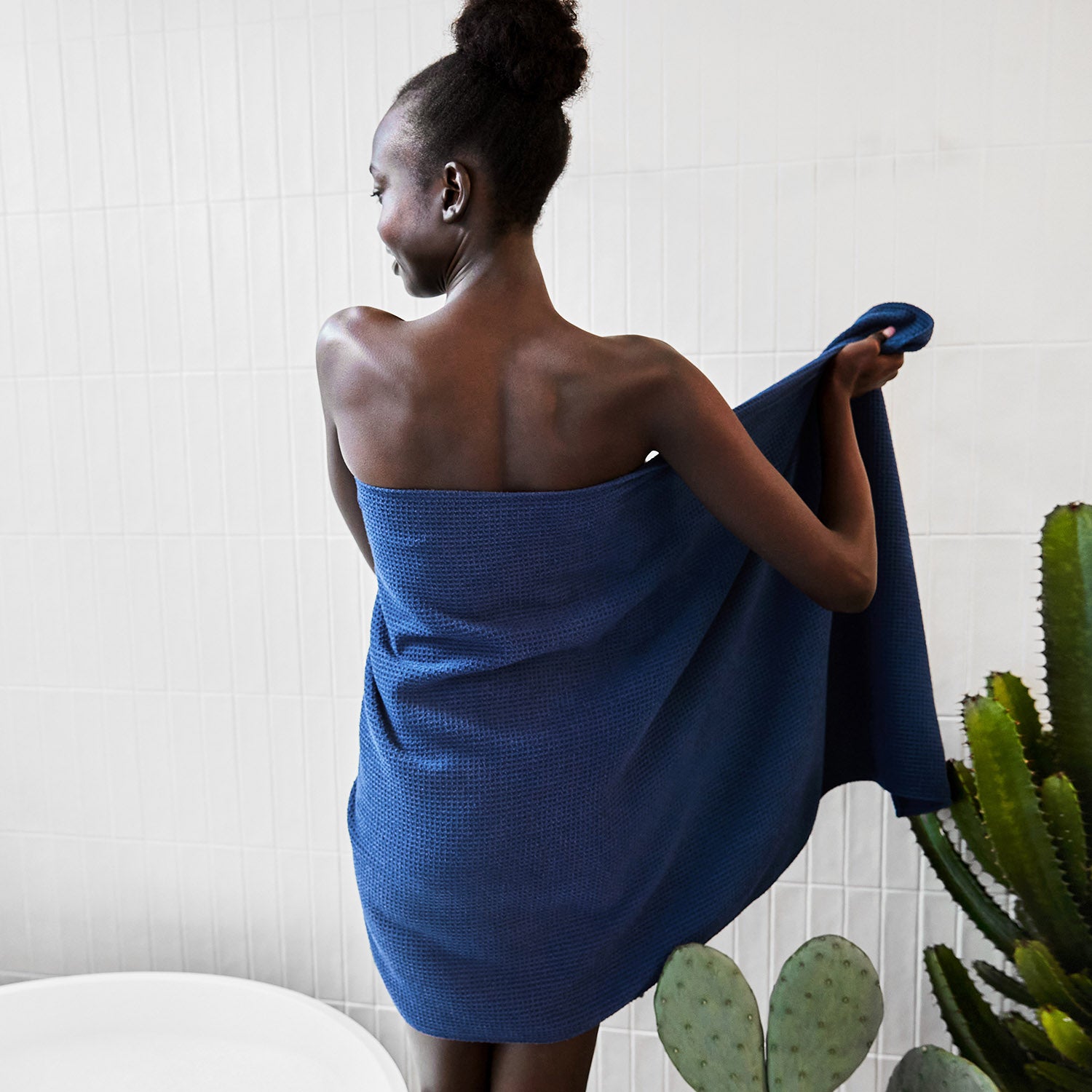 Made from our thicker 100% recycled DryQ™ waffle fabric, it absorbs water quickly and dries much faster than standard cotton, helping prevent damp smells hanging around the bathroom. Built for those who want to dry off fast and get on with their day.