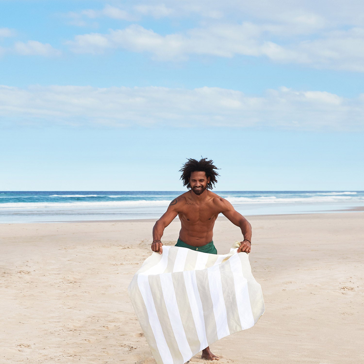 Made from our premium 100% recycled DryQ™ fabric, it dries much faster than standard cotton towels and won’t hold onto damp smells. Sand shakes straight off, it packs down small into its iconic pouch, and it’s ready to go again in no time.