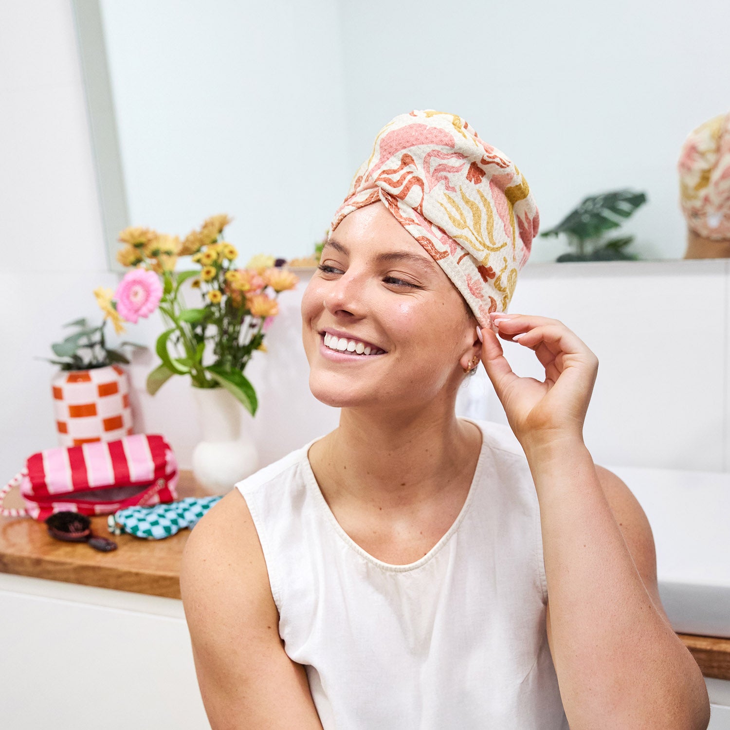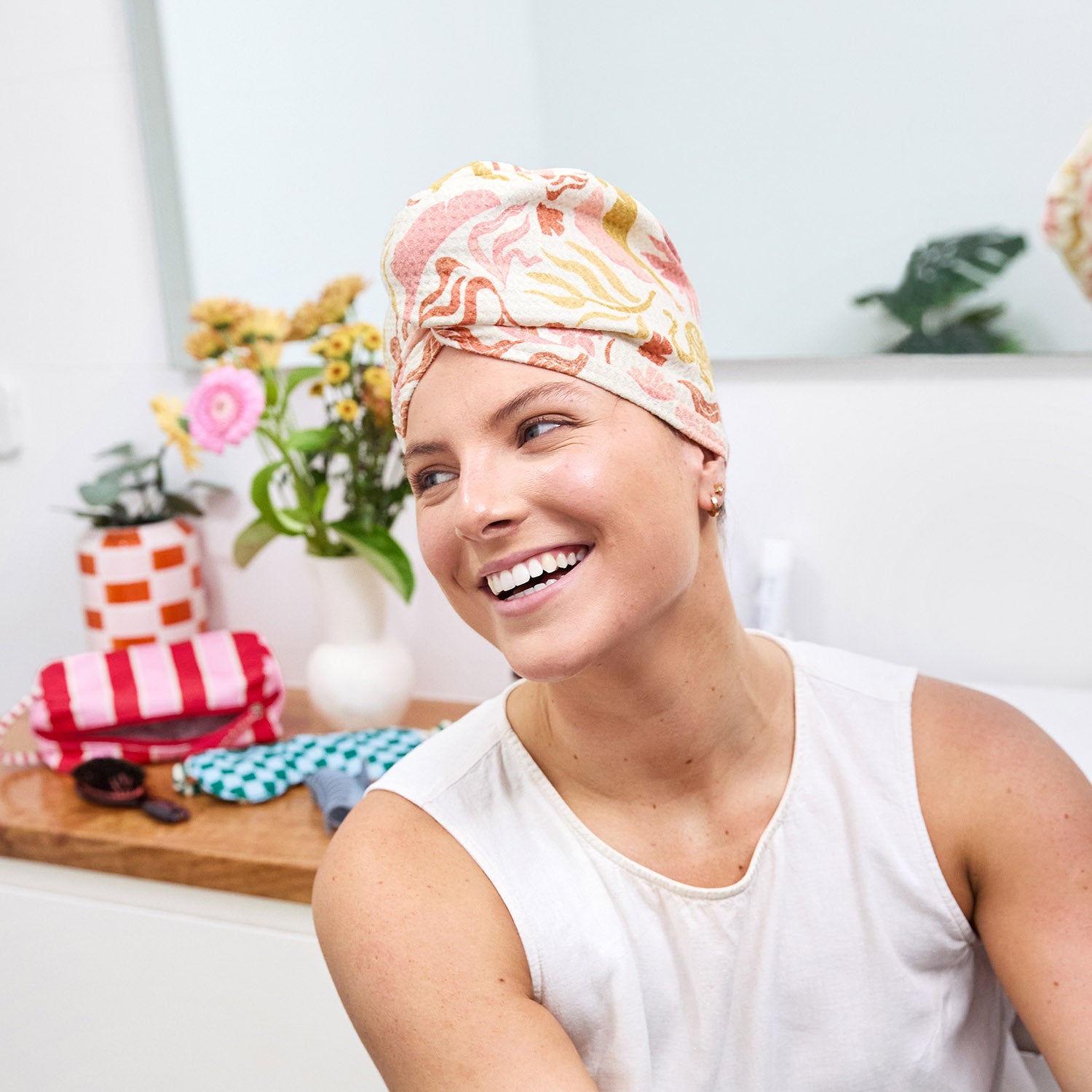 The Hair Wrap (Waffle) designed for hair that needs a little extra drying power. Ideal for longer, thicker, or curlier hair, it absorbs more water so you can spend less time drying and more time getting on with your day.