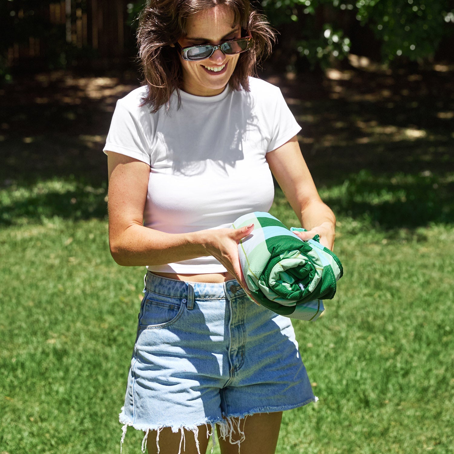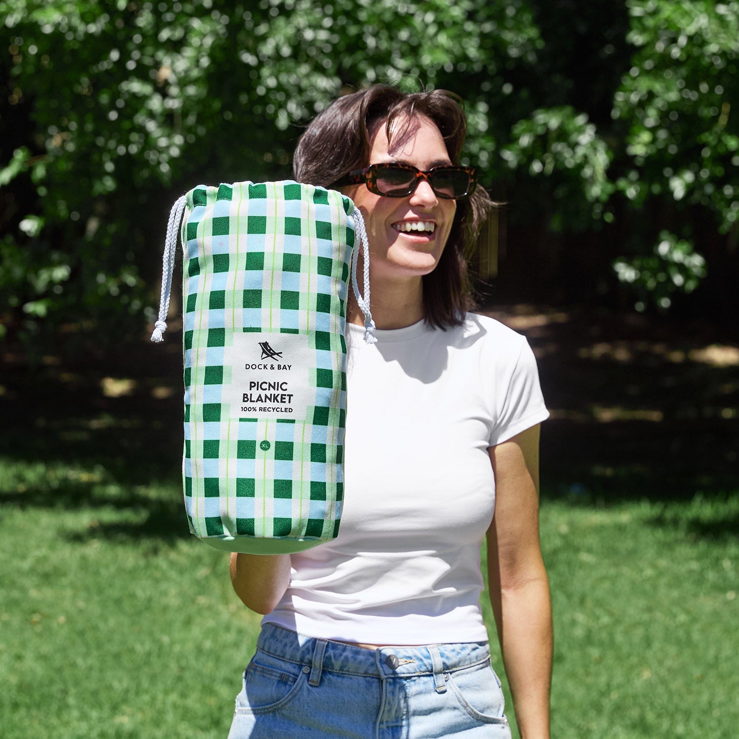 Made from 100% recycled materials and finished with a water resistant backing, it’s designed to handle grass, sand, and damp ground with ease. Soft towel material (DryQ™ fabric) on top for sitting or lounging, tough underneath for real outdoor use. When you’re done, it folds down neatly into its carry pouch, ready for the next adventure.