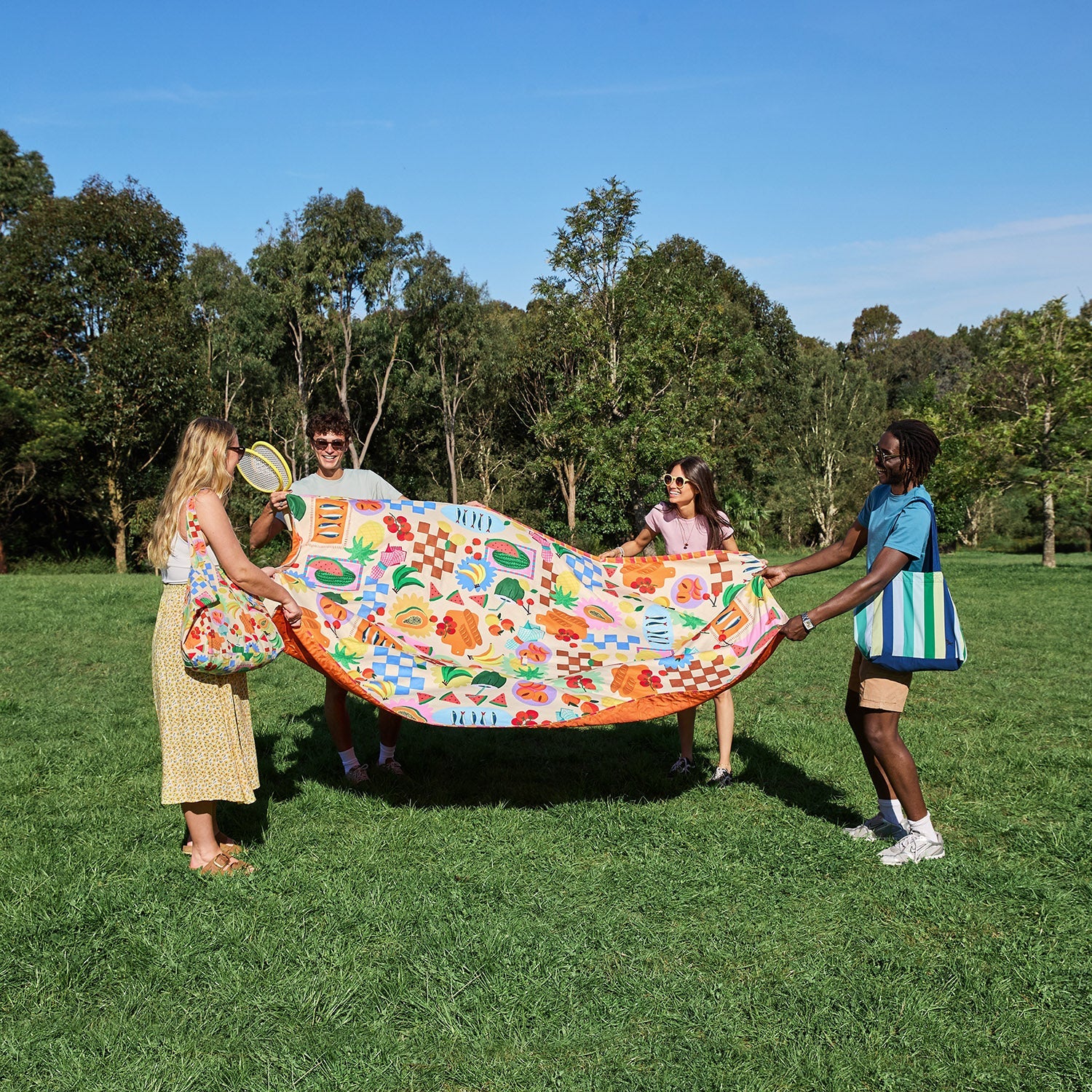 The Picnic Blanket made for proper days out. Big enough to spread out comfortably, whether you’re picnicking in the park, heading to the beach, or claiming your spot at a festival. With a hole designed in the middle, for your umbrella to help protect you from the sun.