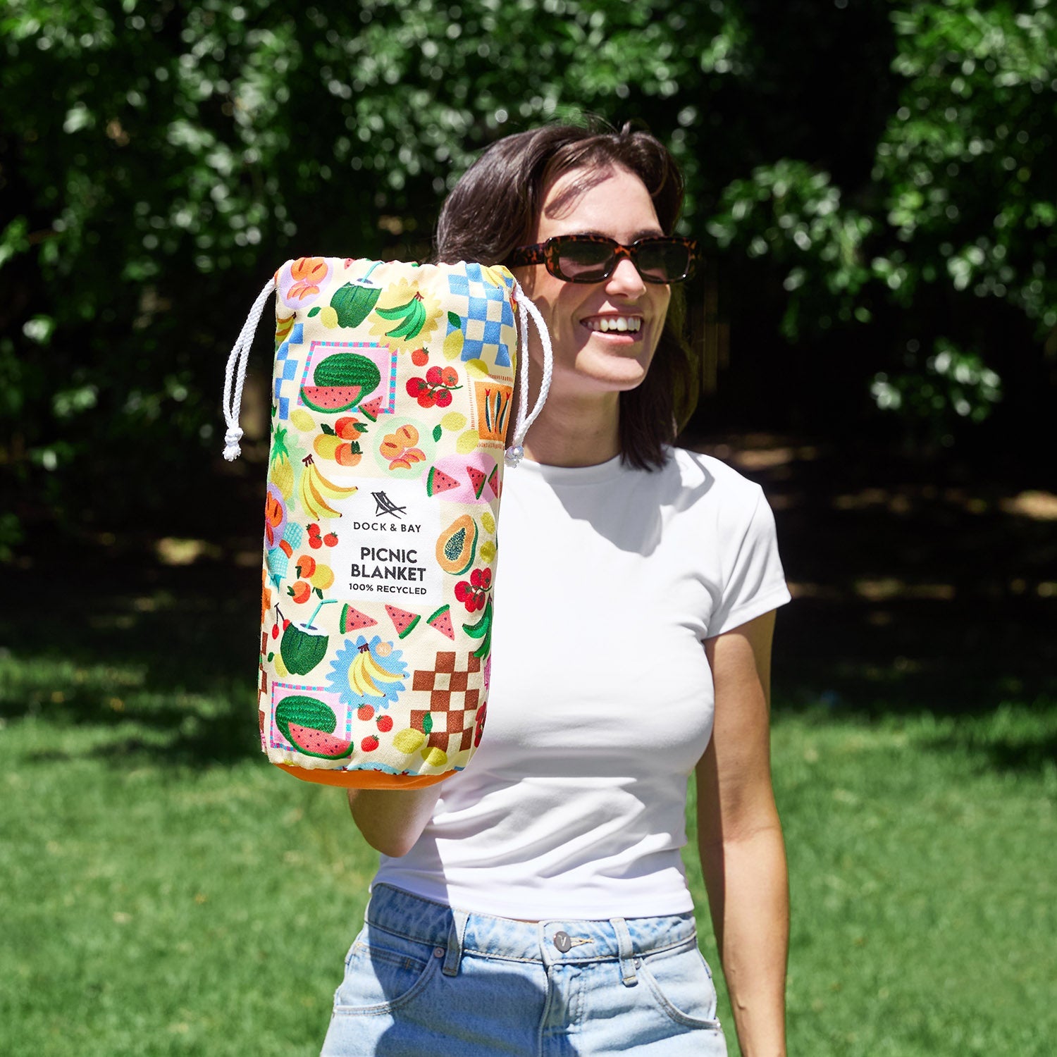 Made from 100% recycled materials and finished with a water resistant backing, it’s designed to handle grass, sand, and damp ground with ease. Soft towel material (DryQ™ fabric) on top for sitting or lounging, tough underneath for real outdoor use. When you’re done, it folds down neatly into its carry pouch, ready for the next adventure.