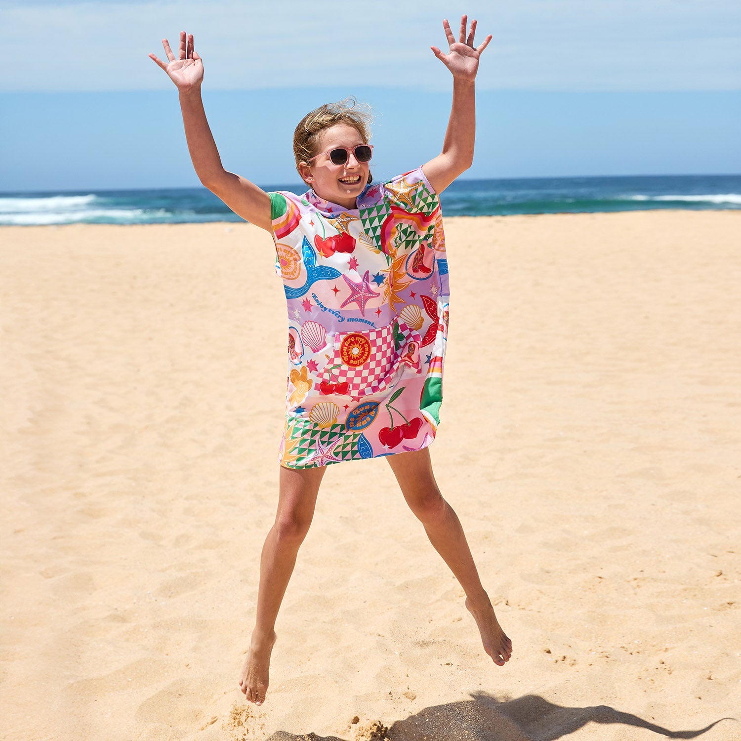 The Kids Poncho designed to make post swim chaos a little calmer. Perfect for beach days, swimming lessons, holidays, or paddling in the sea, it keeps kids warm, covered, and comfy while they dry off or get changed.