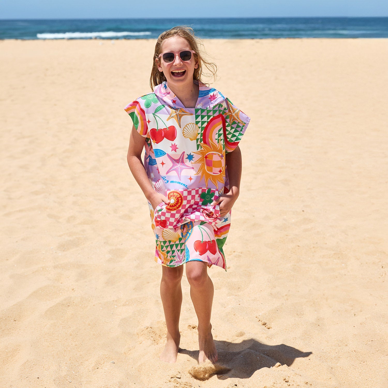 Made from our premium 100% recycled DryQ™ fabric, it’s lightweight, quick drying, and soft on skin. The relaxed poncho shape makes changing underneath easy, while the hood adds extra warmth and coverage when little ones need it most.