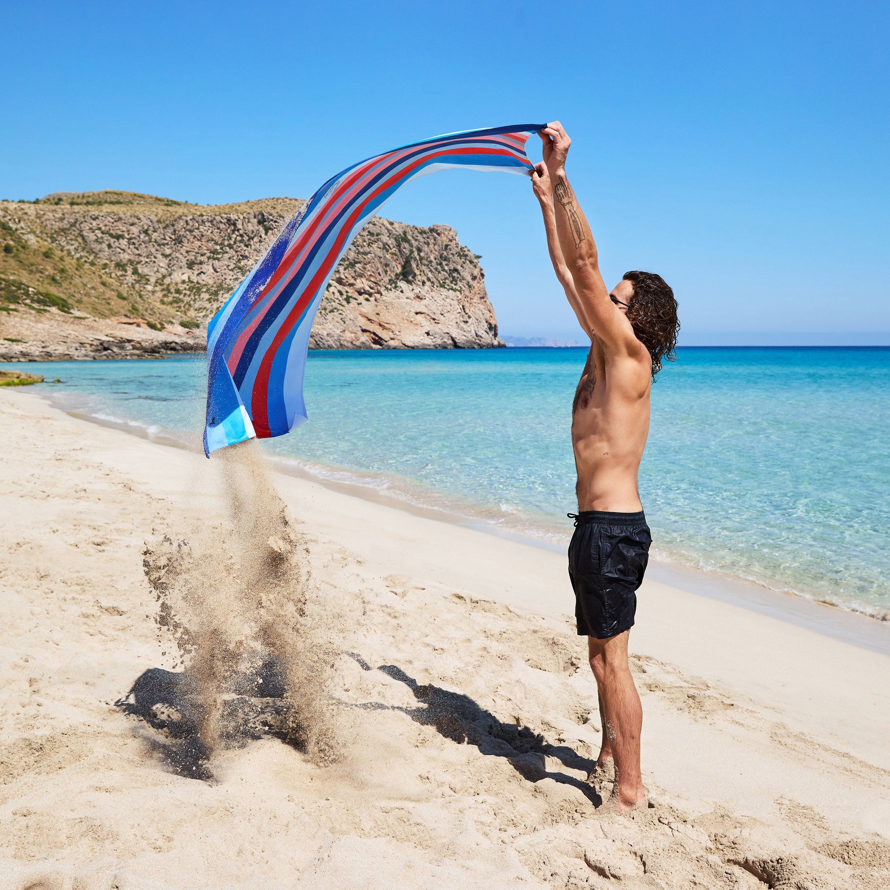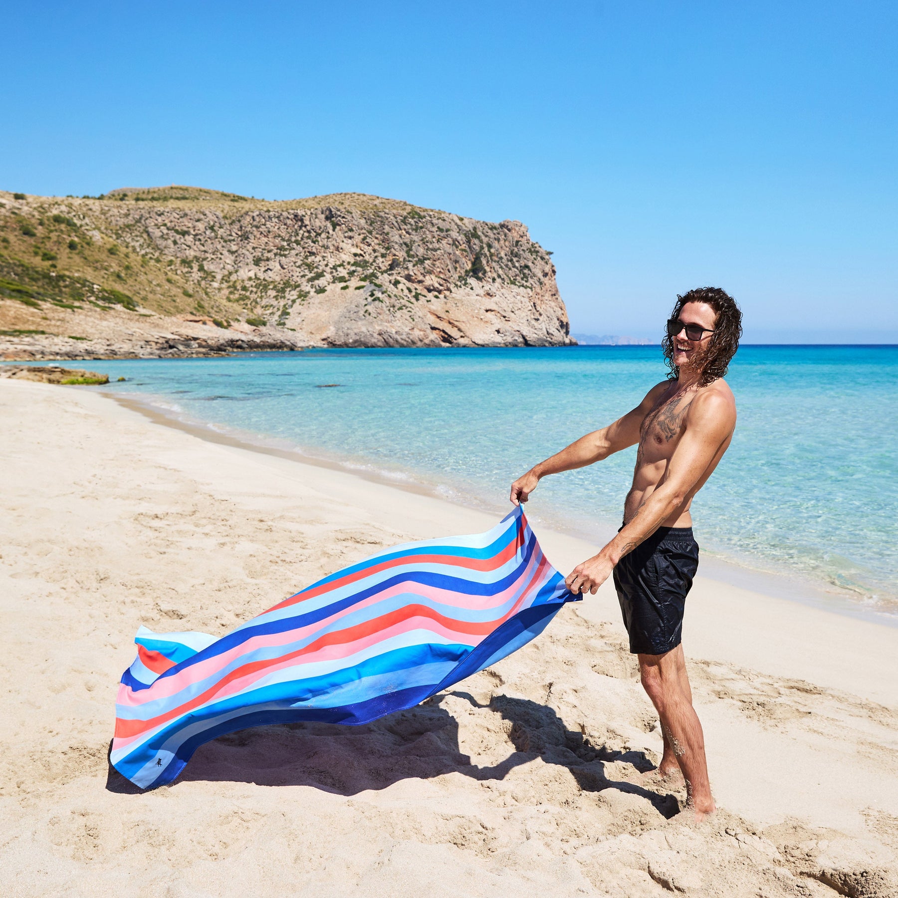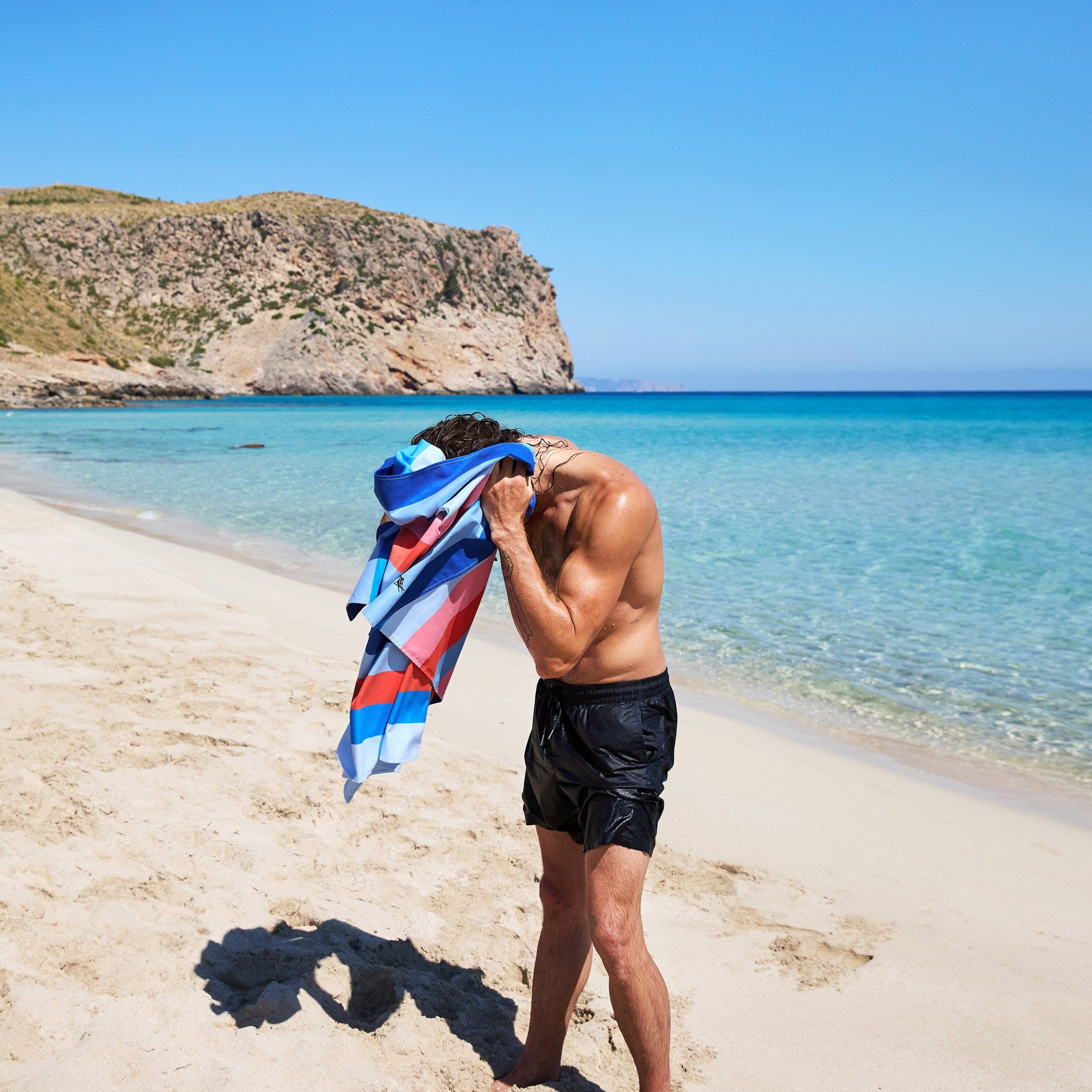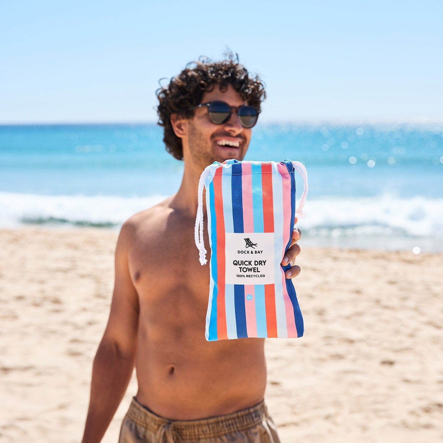 Made from our premium 100% recycled DryQ™ fabric, it dries much faster than standard cotton towels and won’t hold onto damp smells. Sand shakes straight off, it packs down small into its iconic pouch, and it’s ready to go again in no time.
