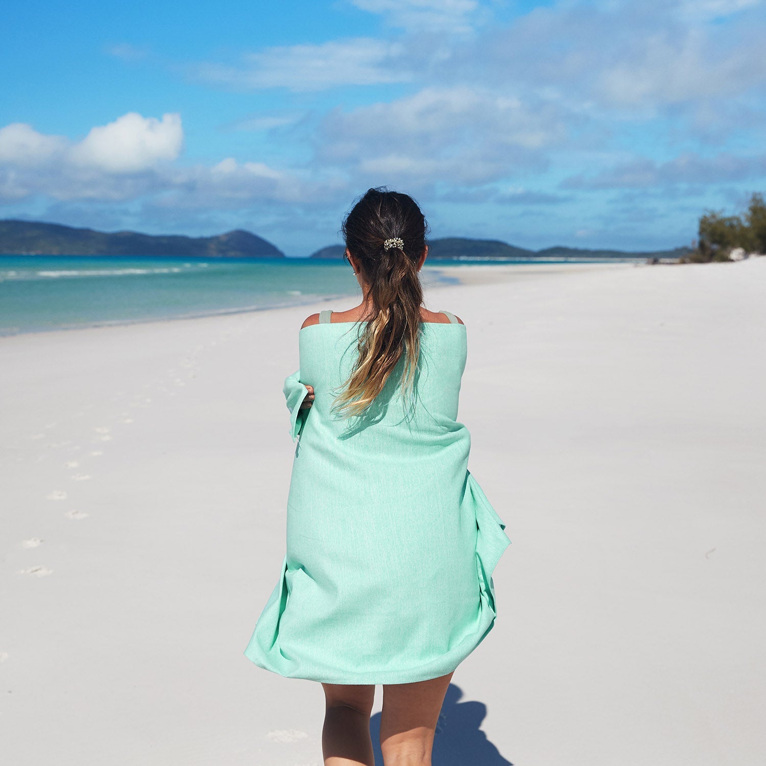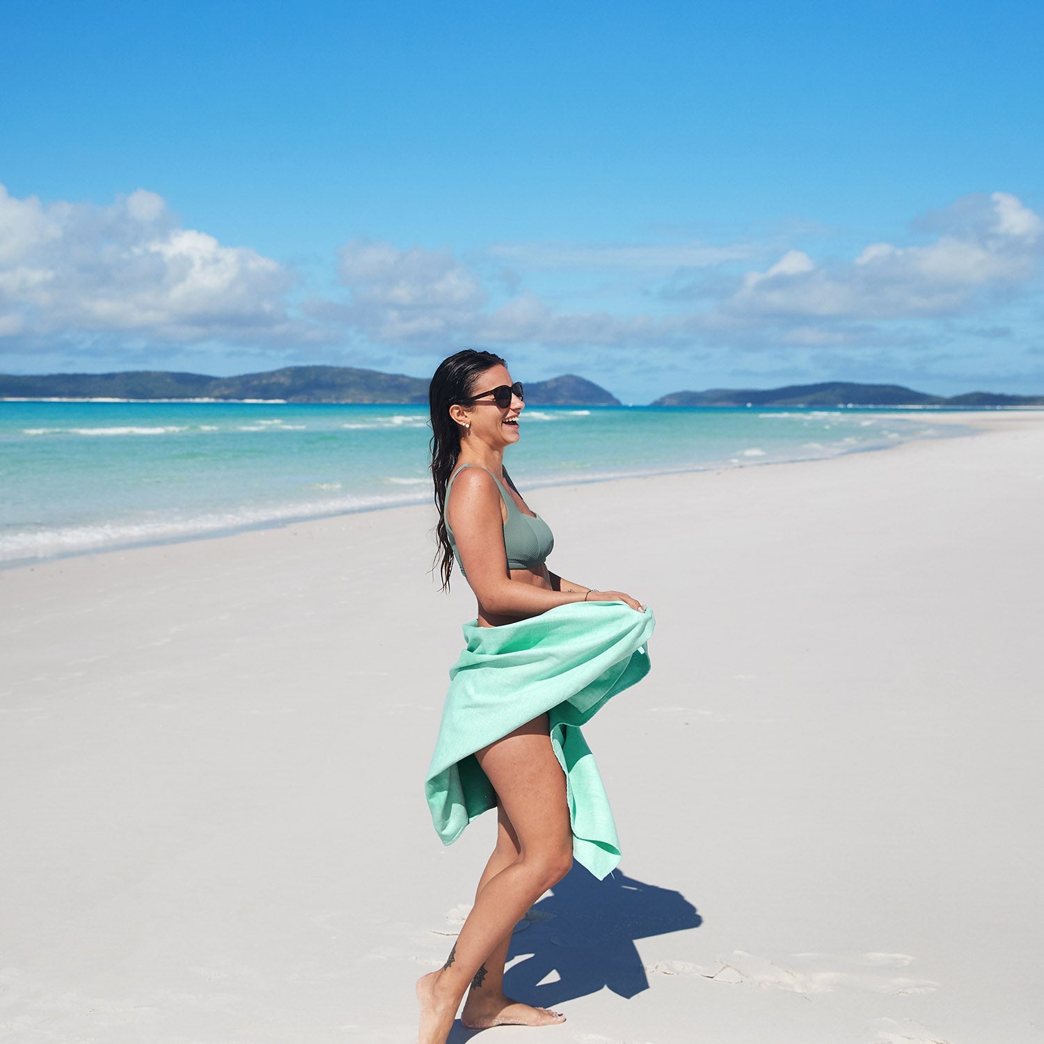 Our towels are made from 100% recycled materials using our unique DryQ™ fabric. Unlike cheaper microfiber towels, ours are super soft on your skin with no scratchy feel. The loop free design means sand won’t stick (even wet sand), and it won’t fray over time. Plus, our iconic pouch lets the towel pack down incredibly small, making it perfect for suitcases or backpacks.