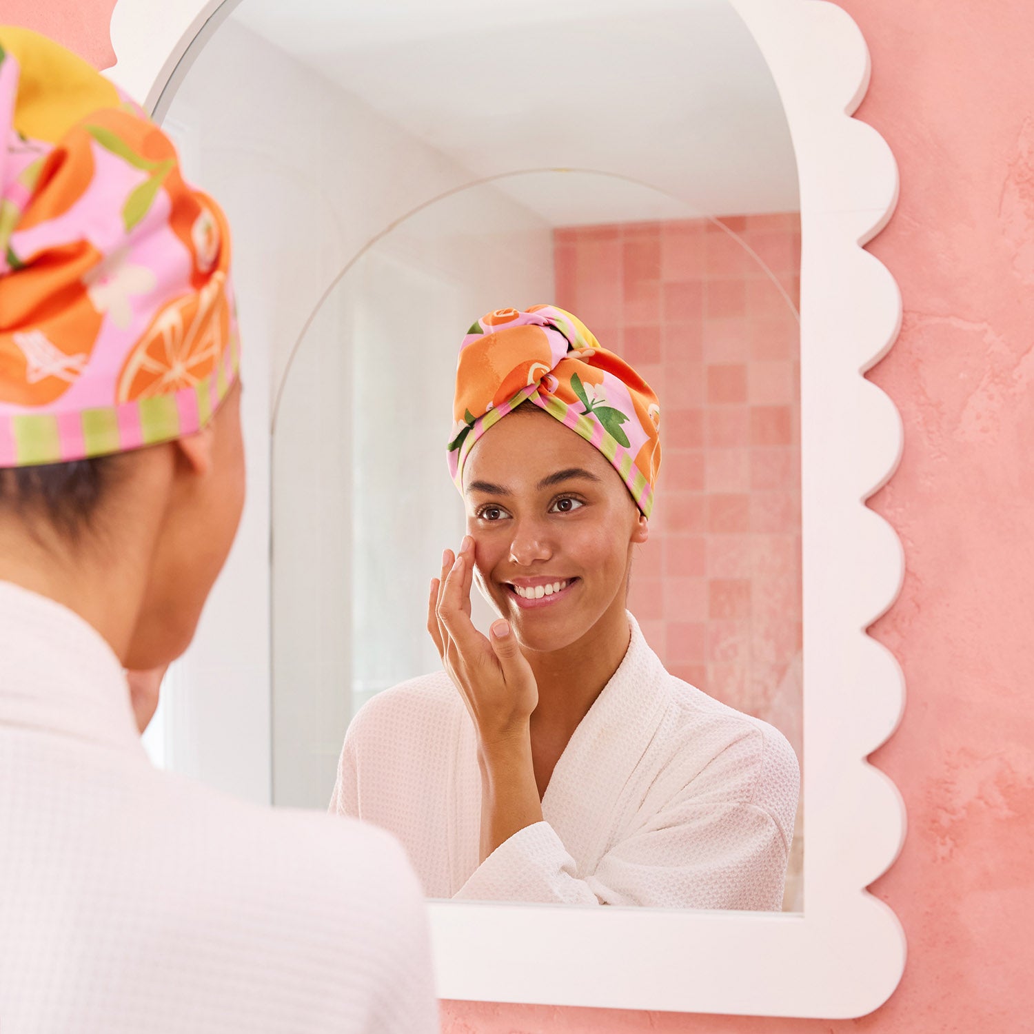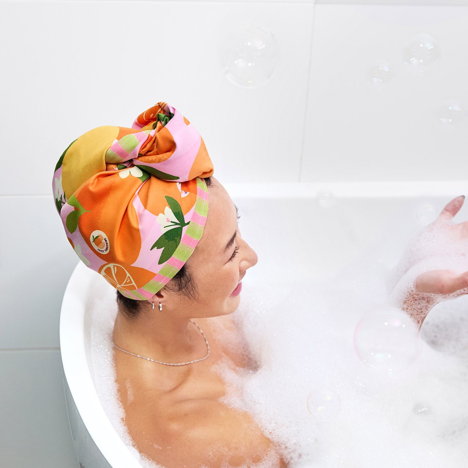 Made from our premium recycled DryQ™ fabric, it’s lightweight (no more neck pain), super absorbent, and soft on hair. The wrap and button design keeps it securely in place, so you can get on with your routine while it works its magic. Loopless fabric creates less rubbing, less frizz, and happier hair all round.