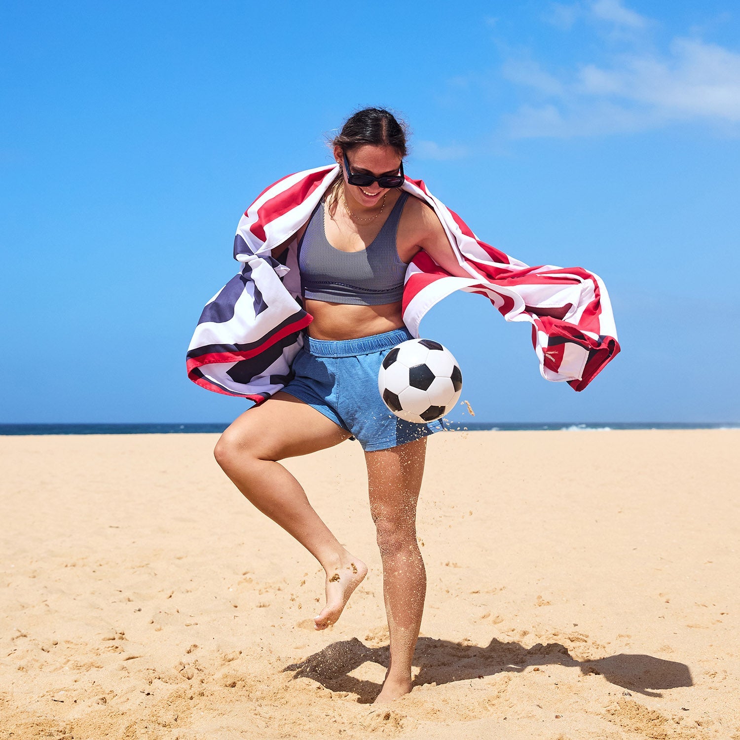Made from our premium 100% recycled DryQ™ fabric, it dries much faster than standard cotton towels and won’t hold onto damp smells. Sand shakes straight off, it packs down small into its iconic pouch, and it’s ready to go again in no time.