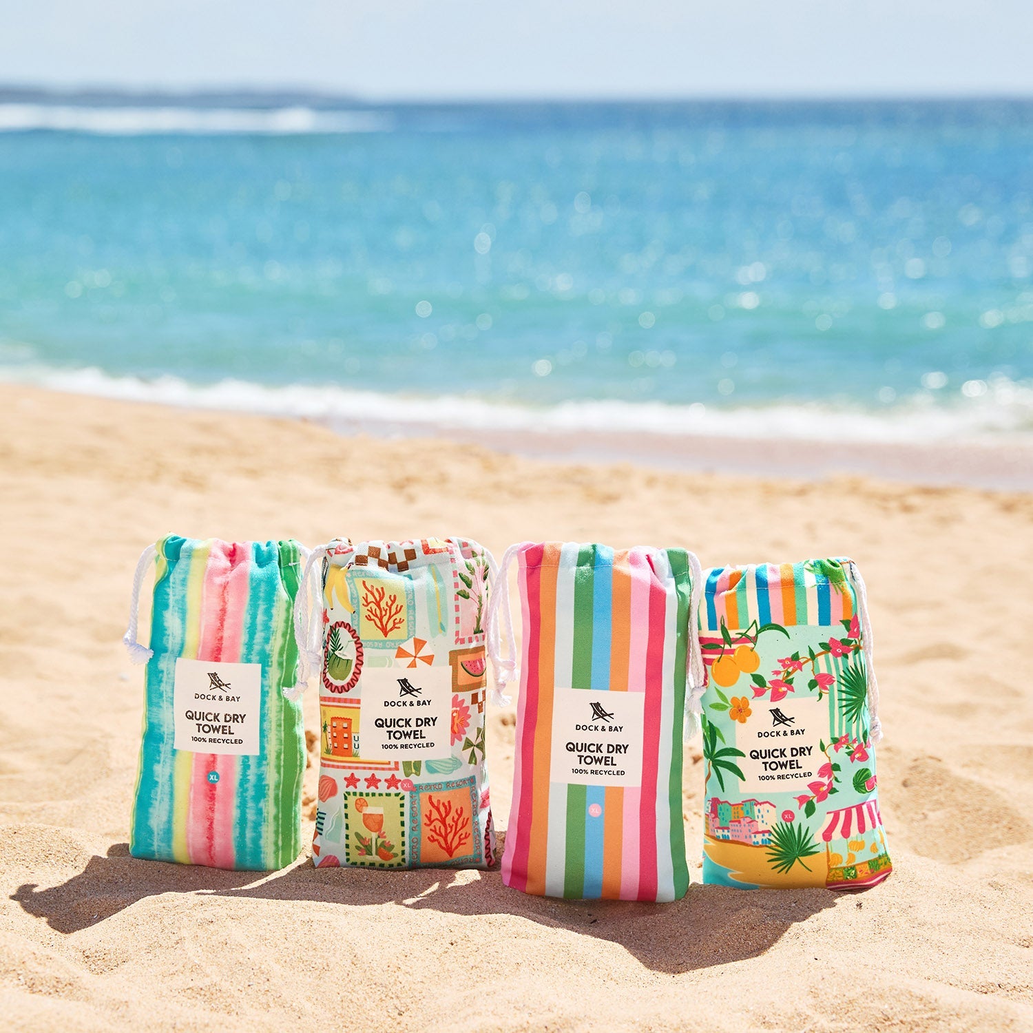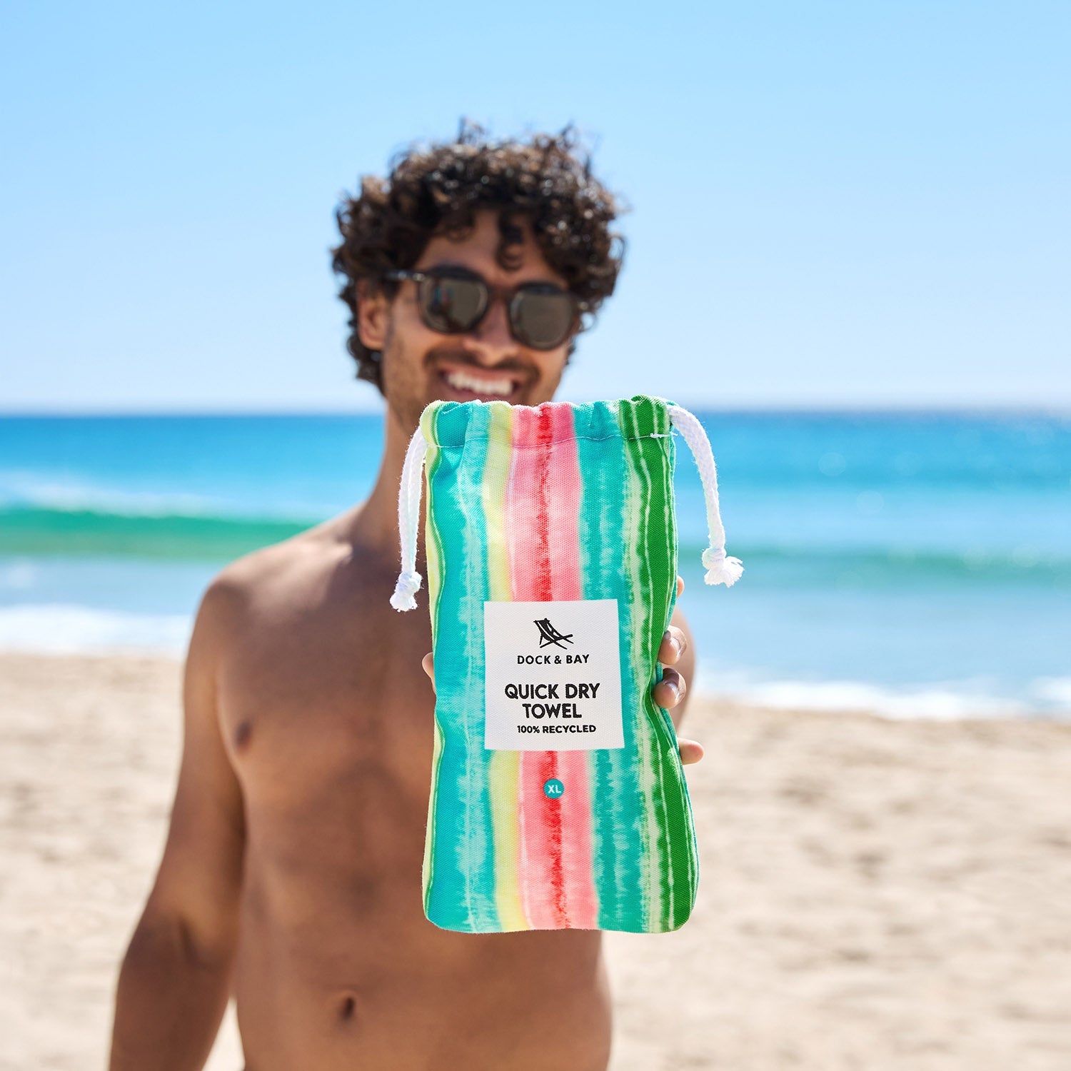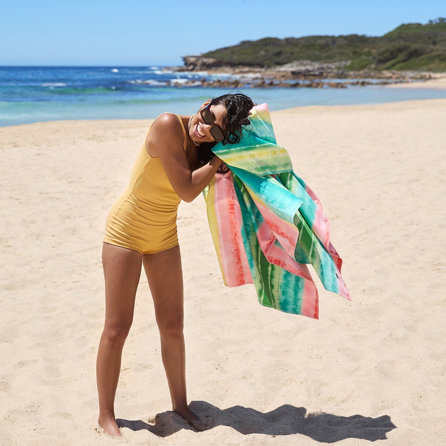Made from our premium 100% recycled DryQ™ fabric, it dries much faster than standard cotton towels and won’t hold onto damp smells. Sand shakes straight off, it packs down small into its iconic pouch, and it’s ready to go again in no time.